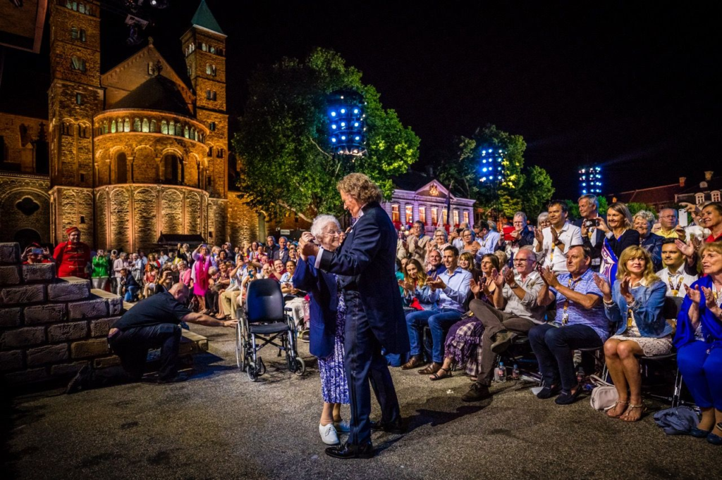 André Rieu did not rush. He walked toward her slowly, with a reverence usually reserved for sacred objects. Their eyes met. His smile softened. Hers widened, the kind of smile that knows exactly how rare a moment is while it is happening.