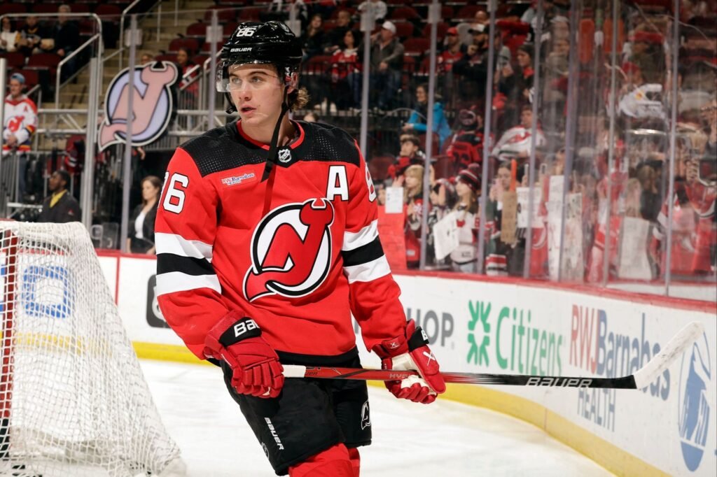 Jack Hughes stood alone, skates planted in the pale glow, a microphone resting lightly in his hands. The ice beneath him still carried the marks of victory — sharp cuts, looping turns, the quiet evidence of effort. Around him, thousands of voices fell away, one by one, until the arena became something rare in sport: still.