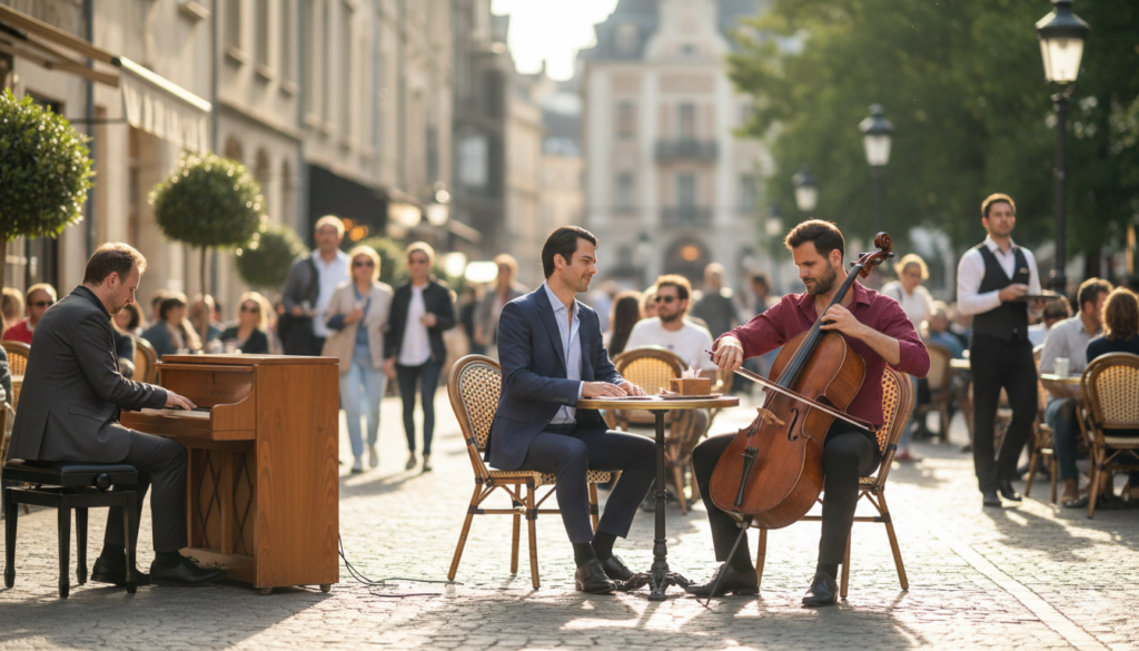 Each note seemed suspended in the air, touching faces like a warm breeze. A pause. A glance. The tiniest tilt of a head. Listeners forgot the world beyond the walls. The music moved them, but not like a wave crashing—it moved them like sunlight through leaves, dappled, slow, living.