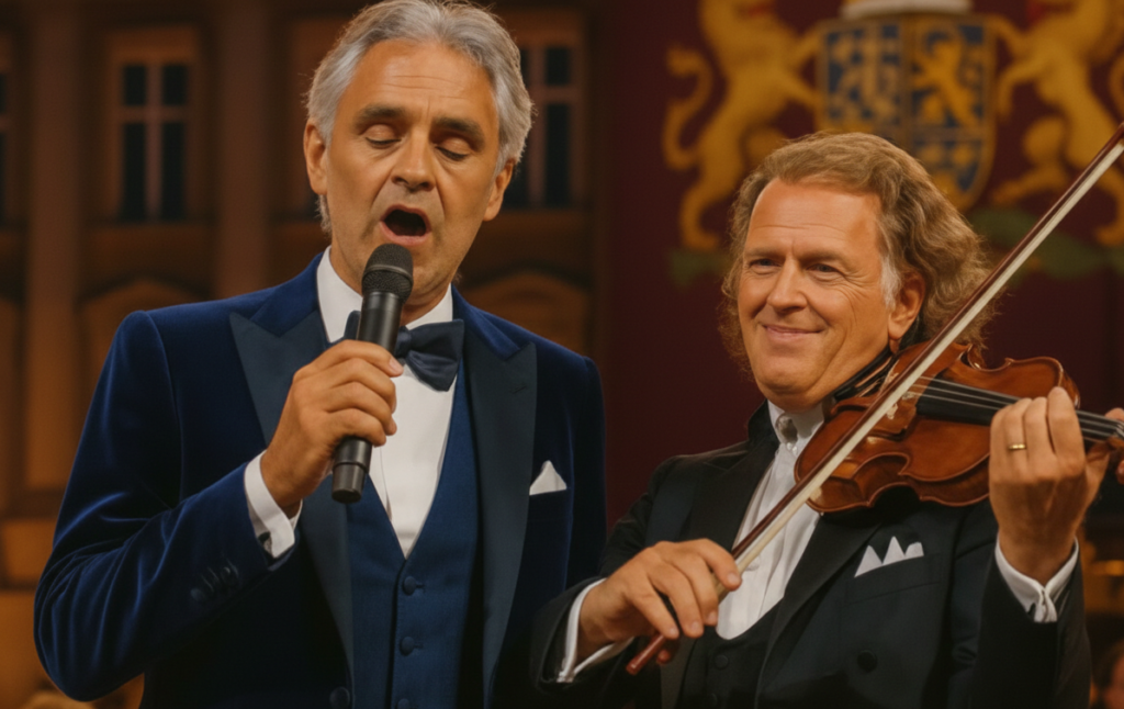 André Rieu appeared first, violin held close, his posture calm in the way of someone who has spent a lifetime listening before speaking. There was warmth in his presence, a quiet elegance that seemed untouched by the size of the crowd.
